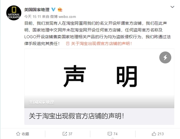 12月6日,美國(guó)國(guó)家地理官方微博發(fā)布聲明稱,淘寶有店肆盜用自己的Logo,出售盜版日歷,將會(huì)通過(guò)法律手段保護(hù)公司的權(quán)益和利益。