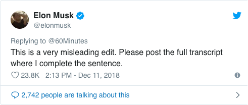 北京時(shí)間12月10日消息,特斯拉公司CEO埃隆·馬斯克(Elon Musk)在承受哥倫比亞廣播公司《60分鐘》節(jié)目采訪時(shí)稱,他并不尊重美國(guó)證券交易委員會(huì)(SEC),之所以恪守SEC和解條款是因?yàn)樗鹬孛绹?guó)司法系統(tǒng)。