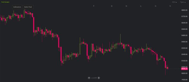 Bitstamp數(shù)據(jù)顯現(xiàn),比特幣最近24小時(shí)跌落逾300美元,跌幅大約3%,一度跌破8000美元報(bào)7980美元,創(chuàng)4月18日以來(lái)新低。