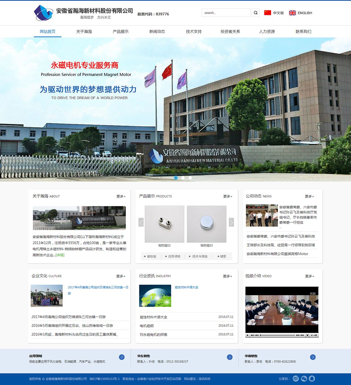 安徽省瀚海新材料股份有限公司(以下簡稱瀚海新材料)成立于2011年12月,注冊資本5556萬,占地100畝,是一家專業(yè)從事電機用稀土永磁材料-燒結(jié)釹鐵硼產(chǎn)品設(shè)計研發(fā)、制造和經(jīng)營的高新技術(shù)企業(yè)。