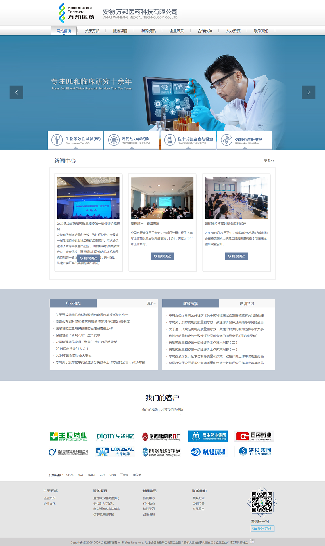 安徽萬邦醫(yī)藥科技有限公司于2006年成立于科教之城合肥,是一家為藥品生產(chǎn)企業(yè)提供仿制藥一致性評價(jià)、人體生物等效性試驗(yàn)、人體和動物藥代動力學(xué)試驗(yàn)、臨床稽查和監(jiān)察等技術(shù)服務(wù)的國家高新技術(shù)企業(yè)。目前與國內(nèi)多個臨床機(jī)構(gòu)擁有緊密的合作關(guān)系,已完成生物等效性試驗(yàn)和藥代動力學(xué)試驗(yàn)共計(jì)200余項(xiàng),項(xiàng)目經(jīng)驗(yàn)豐富,是國內(nèi)新藥臨床研究領(lǐng)域較有影響力的CRO公司之一。