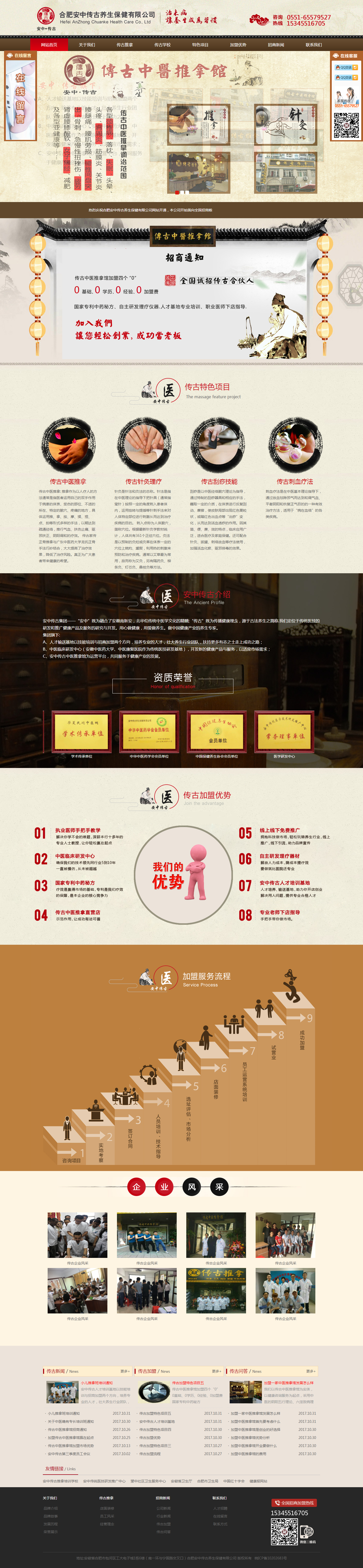 合肥安中傳古養(yǎng)生保健有限公司,旗下安中傳古推拿培訓(xùn)學(xué)校、中醫(yī)臨床研發(fā)中醫(yī)、傳古中醫(yī)推拿館。培訓(xùn)專業(yè)人才,研發(fā)醫(yī)學(xué)藥品,實現(xiàn)輕松創(chuàng)業(yè)的夢想,F(xiàn)面向全國征集合作伙伴,咨詢熱線0551-65579527