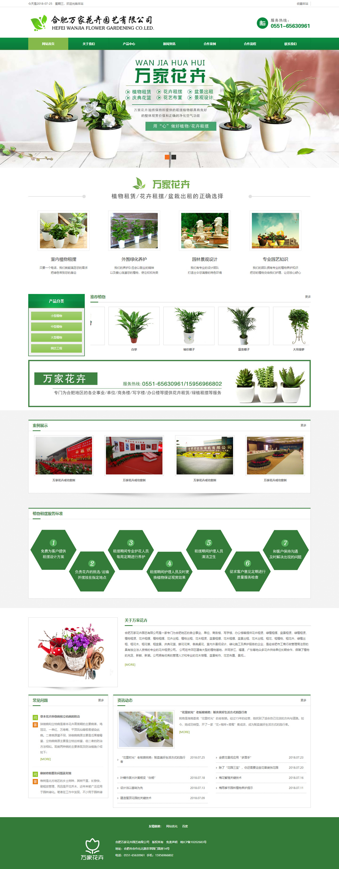 合肥萬(wàn)家花卉園藝有限公司是一家專(zhuān)門(mén)為合肥地區(qū)的各企事業(yè)、單位、商務(wù)樓、寫(xiě)字樓、辦公樓等提供花卉租賃、綠植租擺、盆景租賃、慶典花籃、鮮花花束、各類(lèi)桌花、室內(nèi)外景觀(guān)設(shè)計(jì)、綠化施工及養(yǎng)護(hù)服務(wù)的企業(yè),是經(jīng)合肥市工商行政管理局注冊(cè)的具有獨(dú)立法人資格的專(zhuān)業(yè)的花卉租賃公司。
